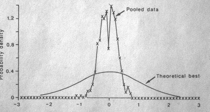 Juste une amusette que je n’oublie jamais, depuis 1988, de livrer lorsque je montre ou projette dans un cours cette dernière courbe « paranormale » : le « trou » profond à la valeur pile zéro est, à mon avis, également très significatif et confirme, si besoin était, l’insanité des données.