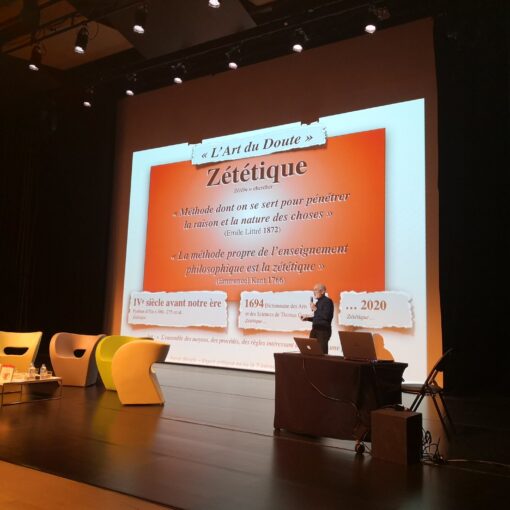 Présentation de la zététique (3 panneaux : définition, facettes et effets)